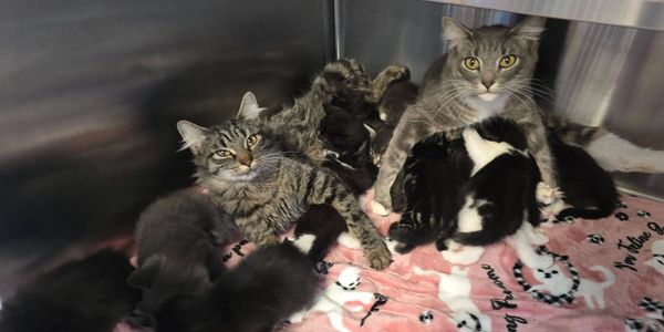 We answered the call for emergency placement for 2 mom cats with 11 kittens between them. We jokingly call them the Sister Wives. It turned out there are actually 12 kittens and the moms are nursing all of them together. This is going to take a lot of foster care, tons of supplies, and especially, a lot of vet care!